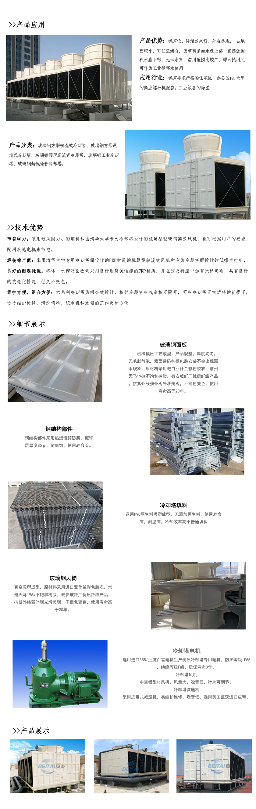 “中小型玻璃纖維增強塑料冷卻塔”規(guī)定的熱力性能及噪聲數(shù)值進行設計的新型橫流式玻璃鋼冷卻塔。